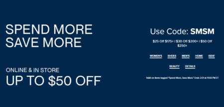 Save up to $50 off when you use code SMSM at checkout:
