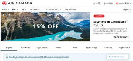 Air Canada: Save 15% Off on Canada and U.S. (Book by June 1)