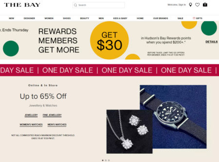 Hudson’s Bay will offer deep, one-day only discounts on various products. Each one-day promotion will begin at 12:00am EST and will end at 11:59pm EST that same day or while quantities last. Visit TheBay.com for the latest sales each day.