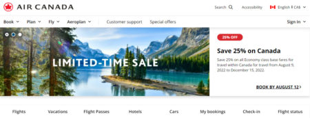 Air Canada is offering a 25% off promotion code.
