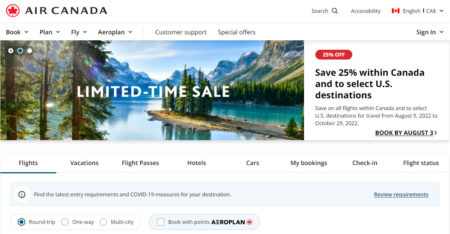 Click here to visit AirCanada.com to book a flight now or for more details