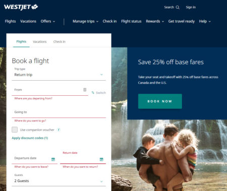 WestJet is offering a 25% Off Discount Code.