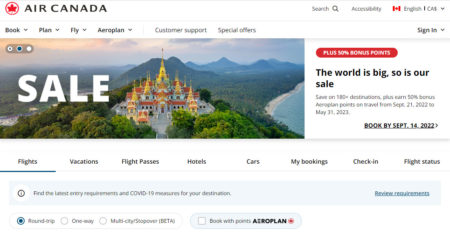 Air Canada’s big worldwide sale is back! Now’s the time to save on all classes of service to 180+ destinations for travel from September 21, 2022 all the way to May 31, 2023.