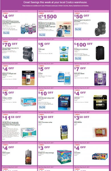 Here is Costco Wholesaler‘s latest weekly instant savings coupons. All of the coupons are valid from May 15 to 21, 2017. Some of the coupons are valid for up to 3 weeks.