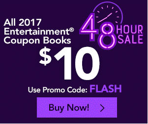 All 2017 Entertainment Coupon Book’s are on sale for only $10.40 + Free Shipping! No promo code requires. Discount will be automatically applied at checkout.