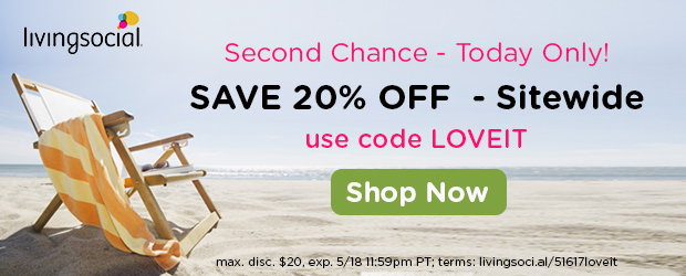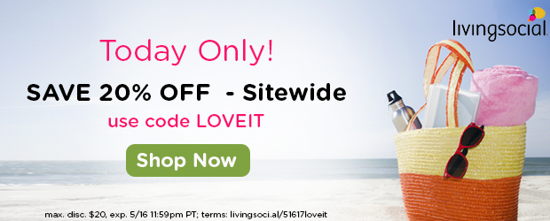 This is a hot deal because most of the deals on LivingSocial is already discounted 50-95% off! You’ll find lots of great deals with the extra 20% off (sale on sale)!