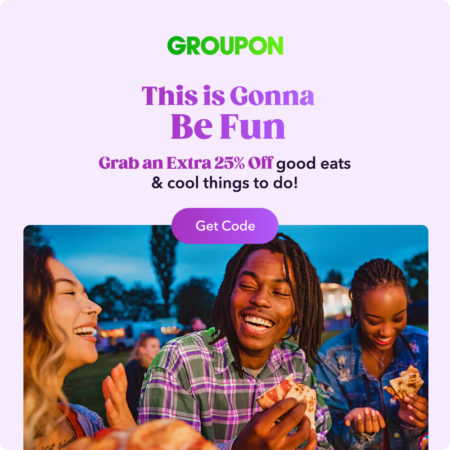 This is a hot deal because most of the deals featured on Groupon is already discounted 50-90% off. You’ll find lots of amazing deals with the extra 25% off (sale on sale).