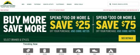 Offer valid from May 23 – June 5, 2017. Excludes Art’teryx & Garmin. Qualifying thresholds are pre-tax and must be purchased in the same transaction. No cash value. $25 & $75 savings will be applied after applicable taxes. Savings cannot be applied to previous purchases, gift cards, shipping or Service Shop services. Cannot be combined with any other offer. Order must be completed by June 6th 2017 1:59 AM ET to qualify.