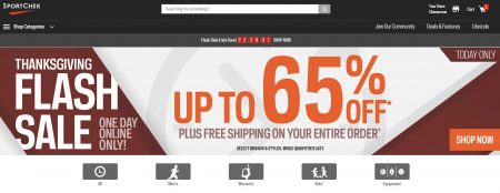 SportChek.ca is having a 1-day only Thanksgiving Flash Sale today (Monday, October 9, 2017).